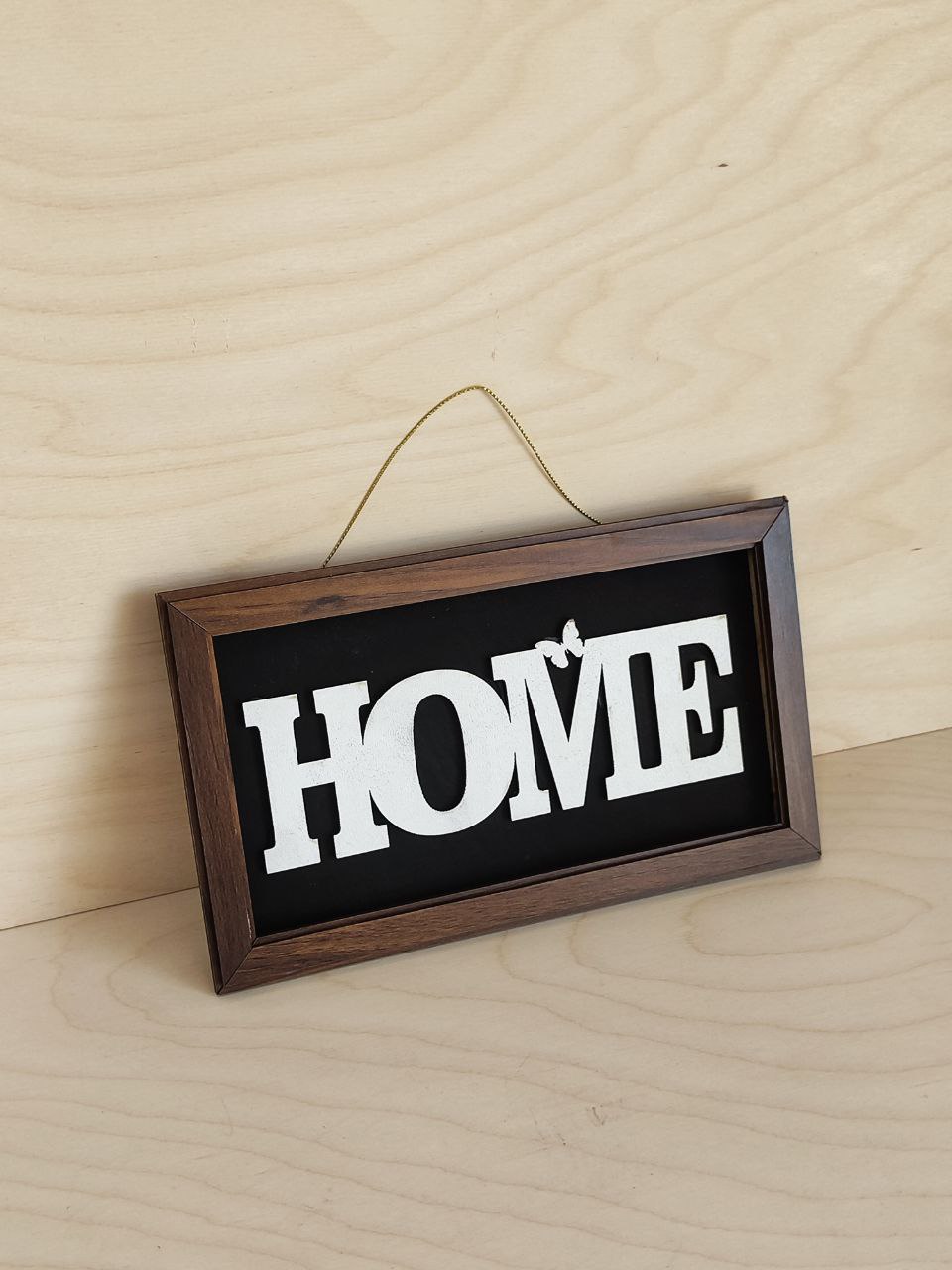 تابلو دکوری امدیاف طرح Home، ابعاد ۲۲×۱۳ سانتیمتر. مناسب برای تزئین ورودی منزل یا اتاق نشیمن.